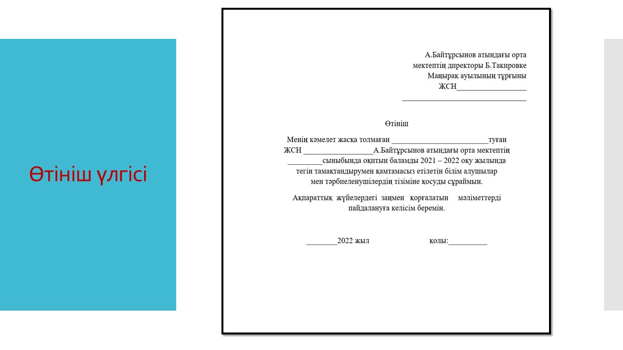 Даярлық ата-ана өтініші, келген кеткен бұйрық